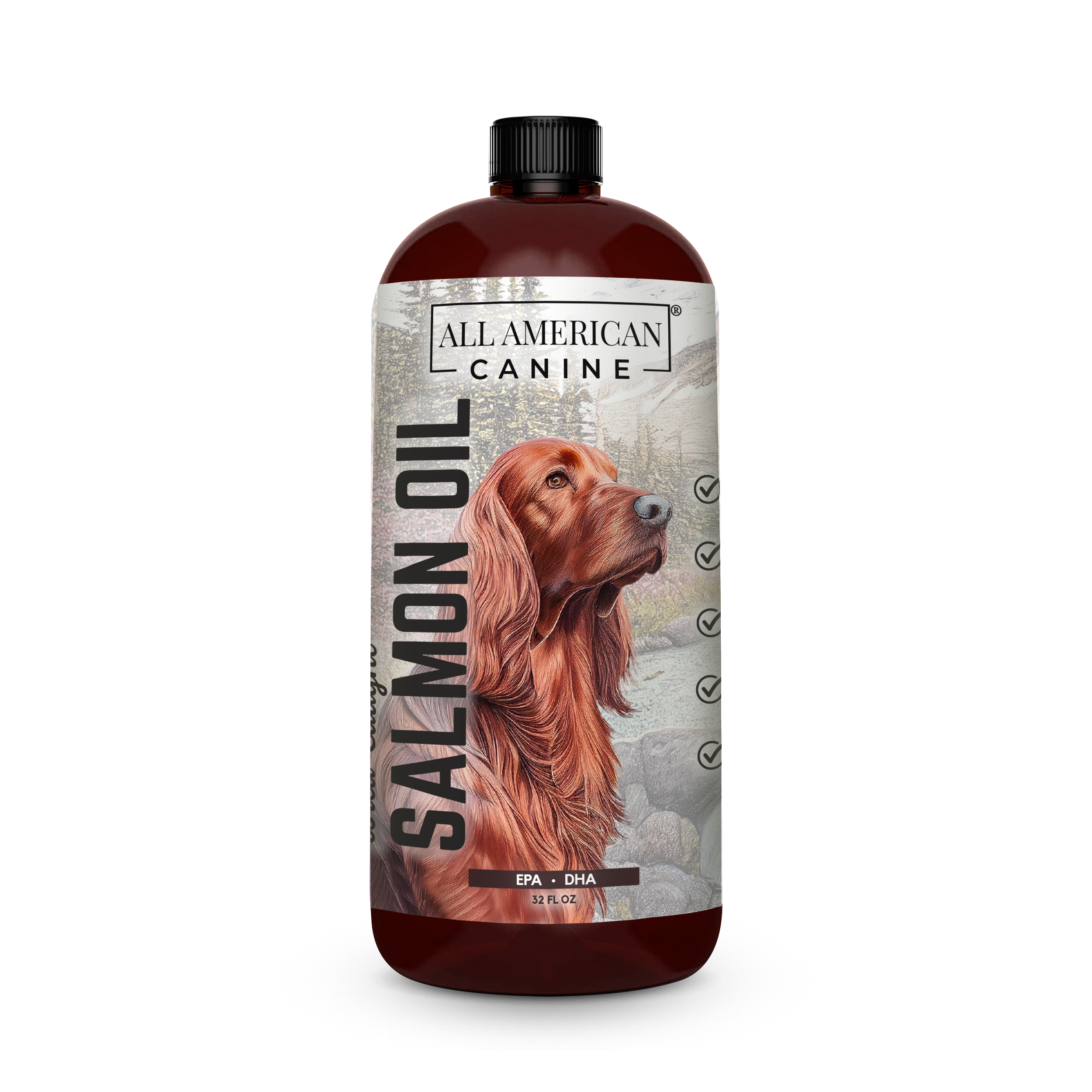 All American Canine - Wild Caught Salmon Oil Liquid Supplement for Optimal Health in Working and Sporting Dogs.